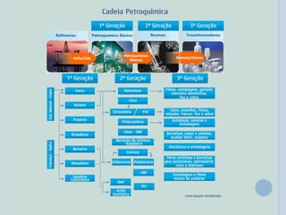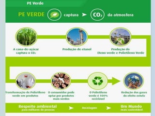 O documento discute a história e propriedades do polietileno. Hans von Pechmann sintetizou-o pela primeira vez em 1898, enquanto Reginald Gibson e Eric Fawcett desenvolveram o processo atual em 1933. Os catalisadores de Ziegler-Natta permitiram a polimerização a pressões normais, ganhando o Prêmio Nobel. O polietileno é usado em sacolas, embalagens e tubulações devido às propriedades como leveza e impermeabilidade.