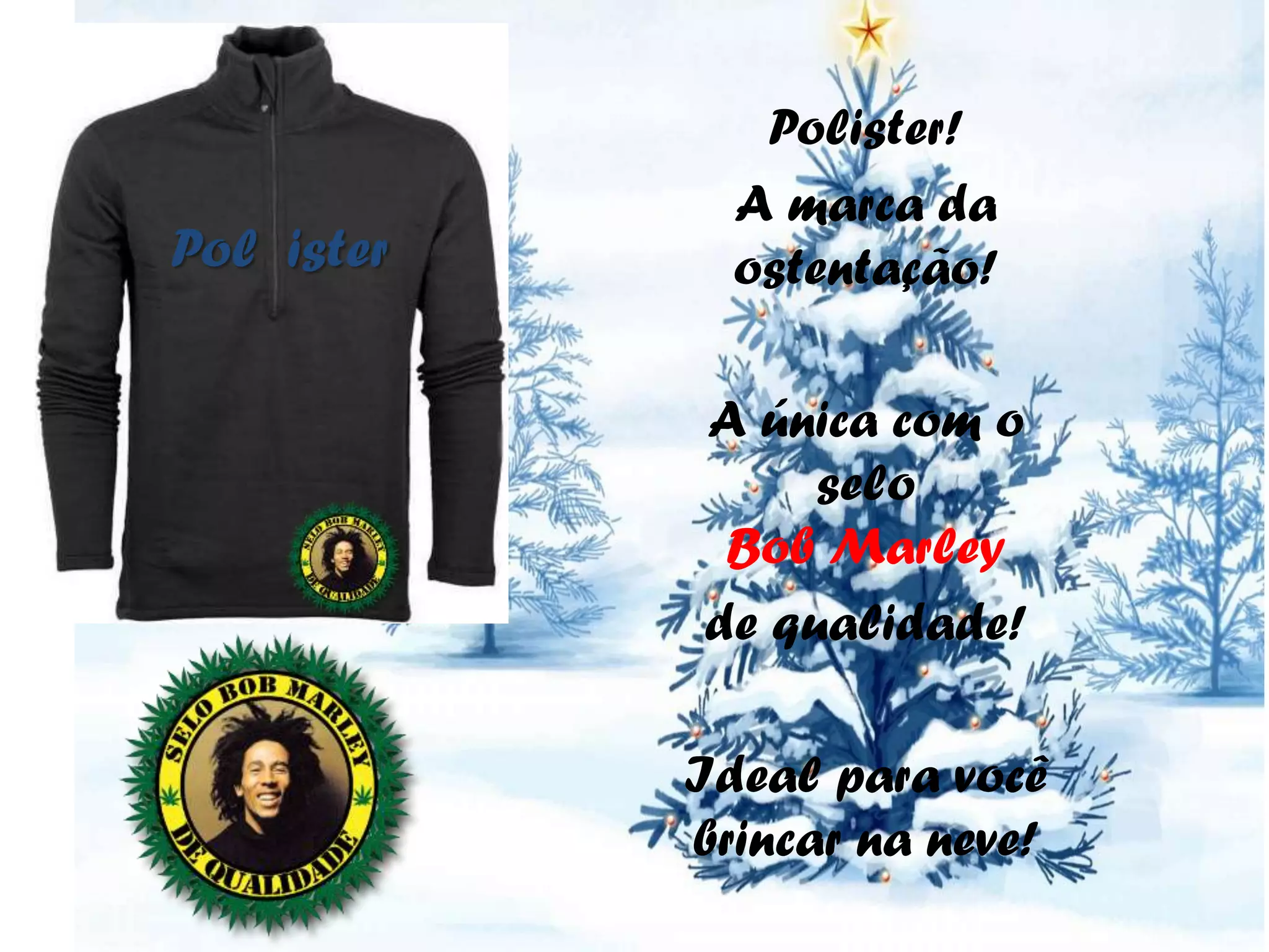 Polister é uma marca de roupas ostentada com o selo de qualidade de Bob Marley, sendo ideal para brincar na neve.