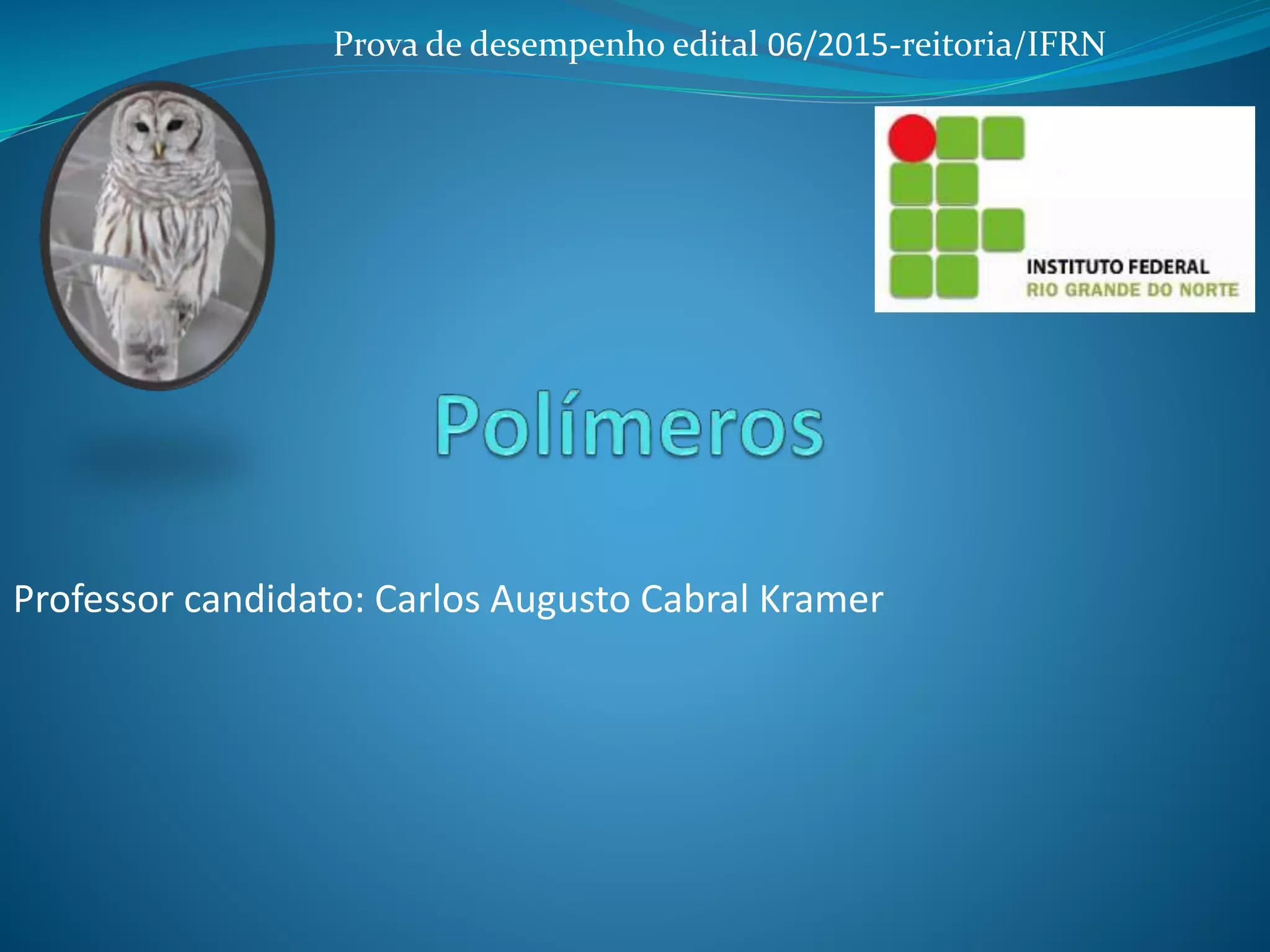 O documento discute conceitos sobre polímeros, incluindo: 1) a definição de polímero como macromoléculas formadas por ligações periódicas entre unidades monoméricas; 2) os tipos de polímeros, incluindo naturais, sintéticos, de adição, condensação e copolímeros; 3) as características dos polímeros, como termoplásticos, termofixos e elastômeros.