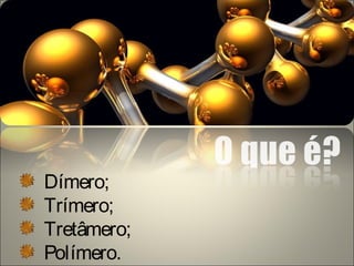 O documento discute os principais tipos de polímeros, incluindo polímeros de adição, polímeros de condensação e suas características. Também lista alguns polímeros sintéticos comuns e seus usos, como o PVC em telhas e portas e o PET em embalagens.