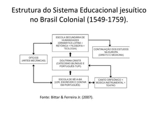 O documento descreve a evolução histórica da educação no Brasil Colonial, Imperial e nas primeiras décadas da República, abordando: 1) O sistema educacional jesuítico e as reformas pombalinas; 2) A educação no período imperial influenciada pelas elites agrárias; 3) Os desafios da educação pública nos primeiros tempos republicanos, marcados pela exclusão e ausência de políticas nacionais.