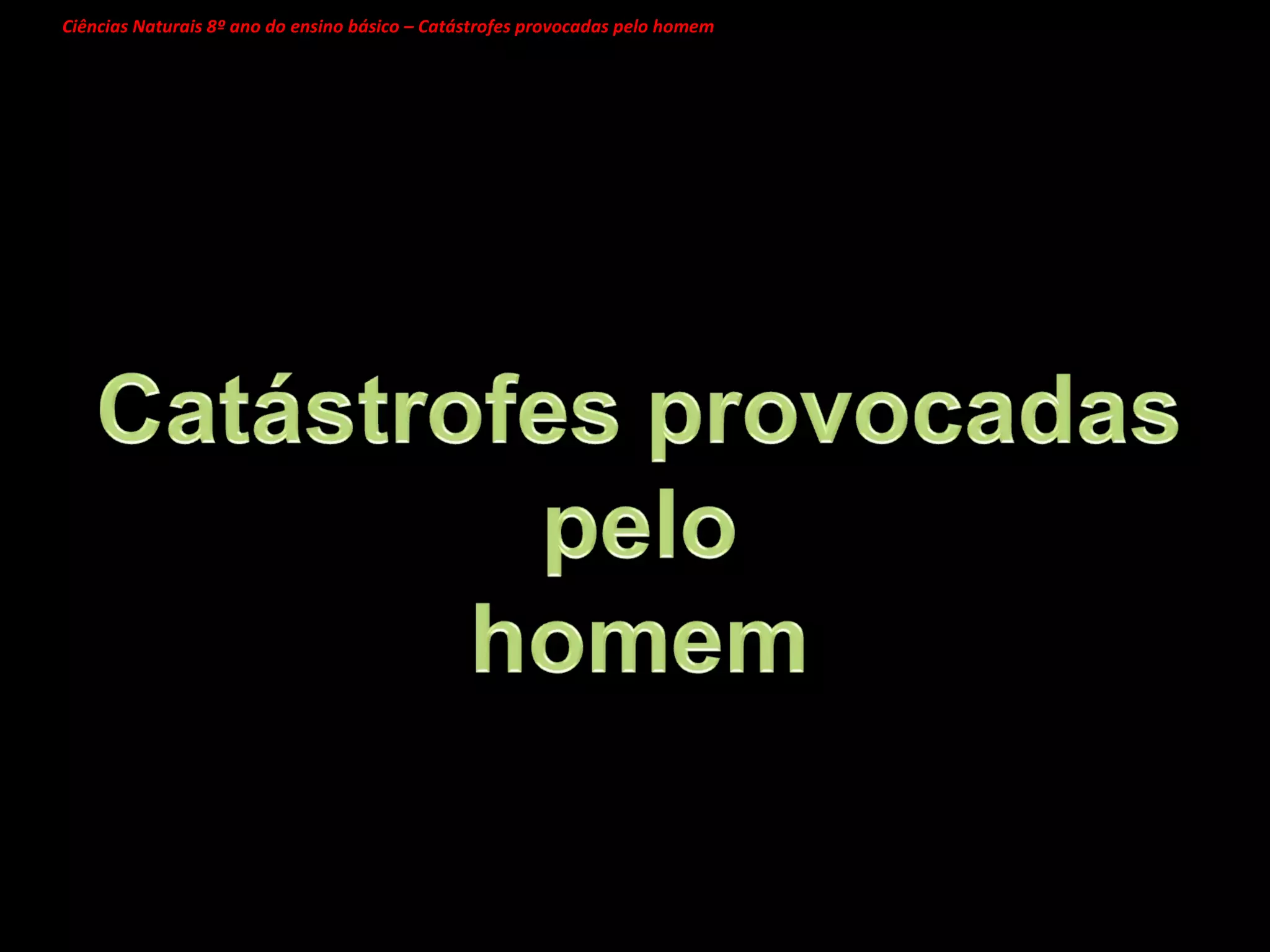 O documento discute vários tipos de catástrofes ambientais causadas pelo homem, incluindo poluição do ar e chuva ácida, poluição do solo por agrotóxicos e resíduos, e desastres industriais como o derramamento de produtos químicos tóxicos durante um ataque aéreo na Sérvia.