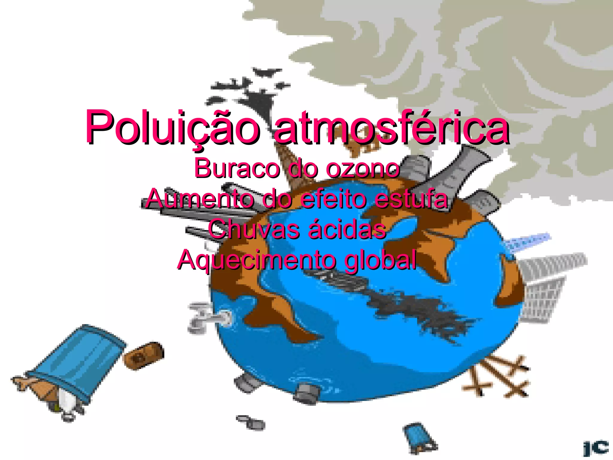 O documento discute vários problemas ambientais globais, incluindo poluição atmosférica, buraco na camada de ozônio, aumento do efeito estufa, chuvas ácidas e aquecimento global. Ele fornece causas, consequências e possíveis soluções para cada problema.