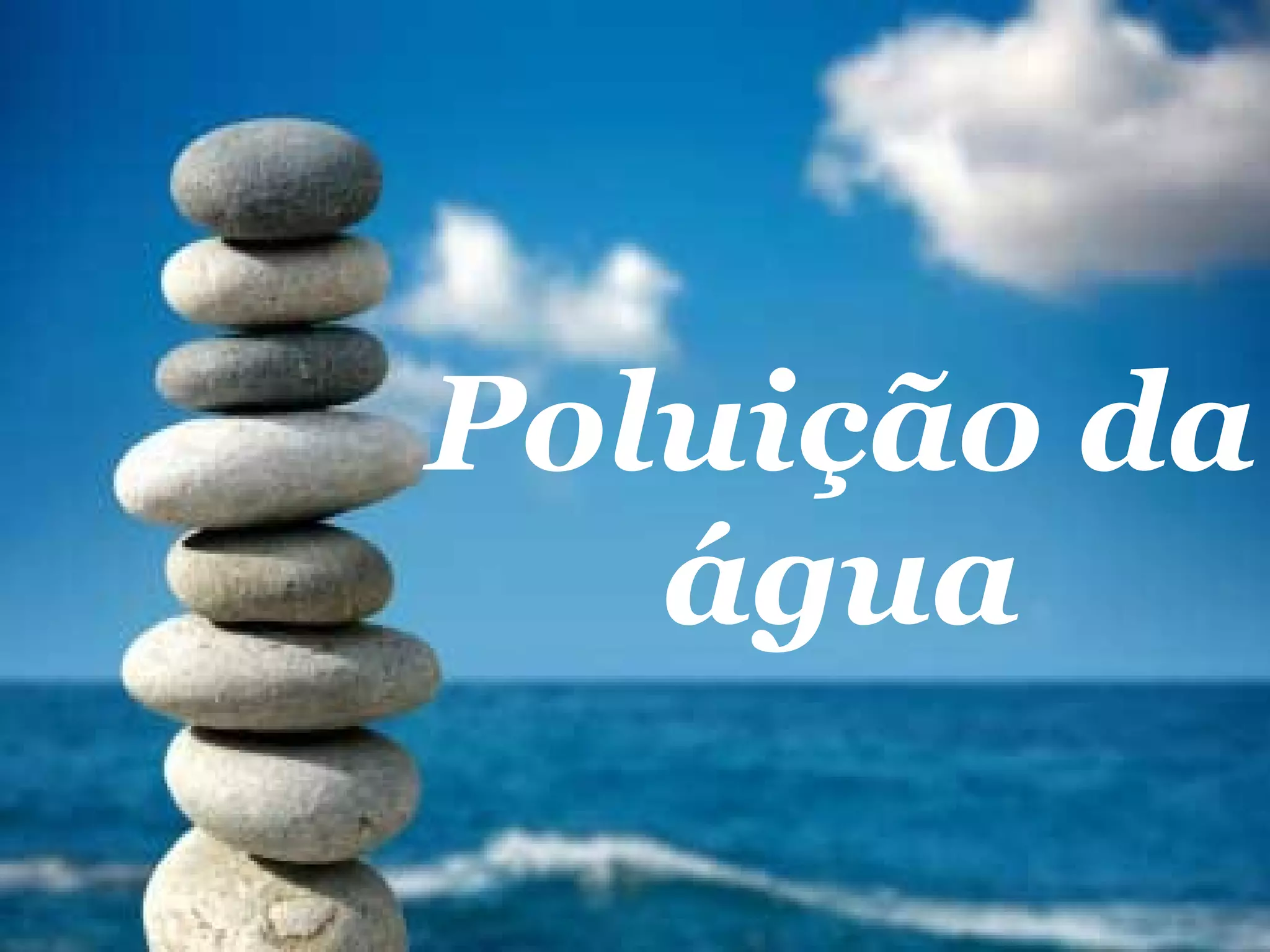 A poluição da água é causada pelo lançamento de esgoto e resíduos industriais em rios, lagos e mares, colocando em risco a saúde humana e a vida selvagem. A água poluída pode conter vírus, bactérias e parasitas que causam doenças como cólera e hepatite. Contaminação da água devido ao crescimento populacional, urbanização e atividade industrial.