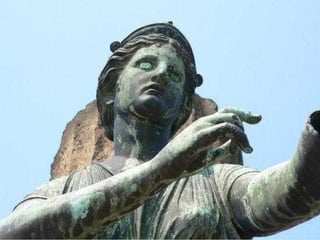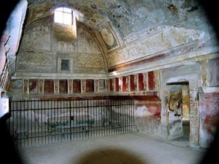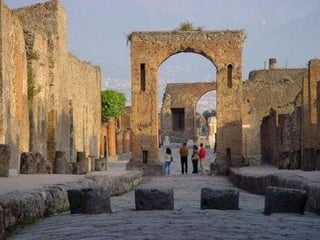 A cidade romana de Pompéia foi sepultada pela erupção do Vesúvio em 79 d.C., preservando estruturas e objetos. Escavações revelaram casas, templos, termas, teatro e ruas, mostrando como era a vida cotidiana. Com 20 mil habitantes, Pompéia continua fascinando visitantes como uma jóia arqueológica única.