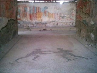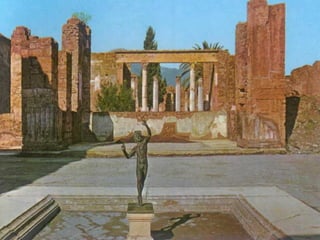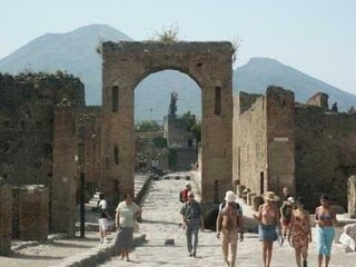 A cidade romana de Pompéia, localizada perto de Nápoles na Itália, foi soterrada pela erupção do Vesúvio em 79 d.C., preservando estruturas e objetos. Com cerca de 20.000 habitantes, Pompéia continha casas, templos, termas, teatro e outros edifícios, além de ruas pavimentadas. Escavações revelaram como era a vida na cidade há dois mil anos.