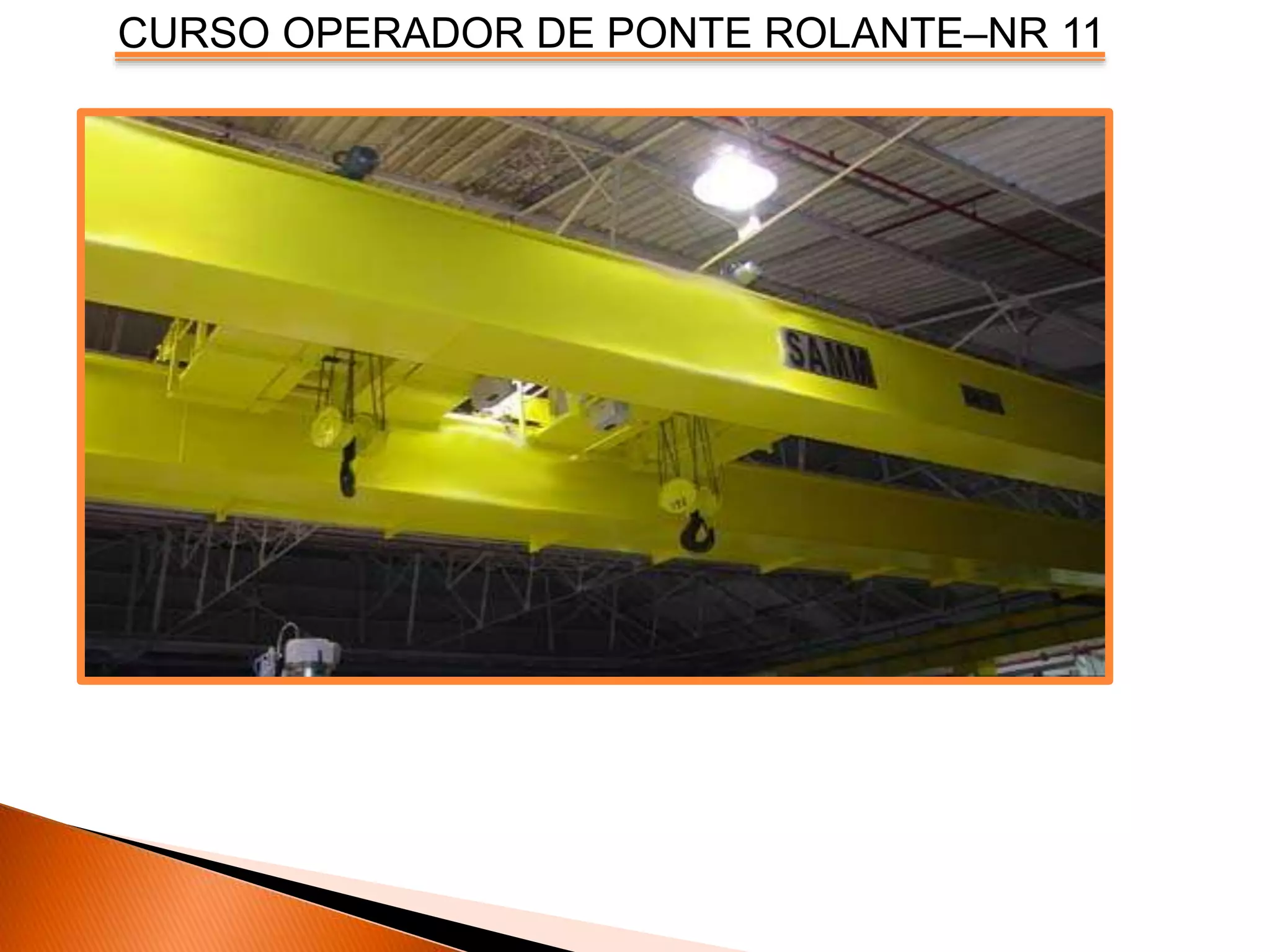 O documento descreve um curso para operadores de ponte rolante de acordo com a NR 11, abordando tópicos como legislação, responsabilidades, equipamentos de proteção individual, riscos, comportamento seguro, classificação de pontes rolantes e operação segura.