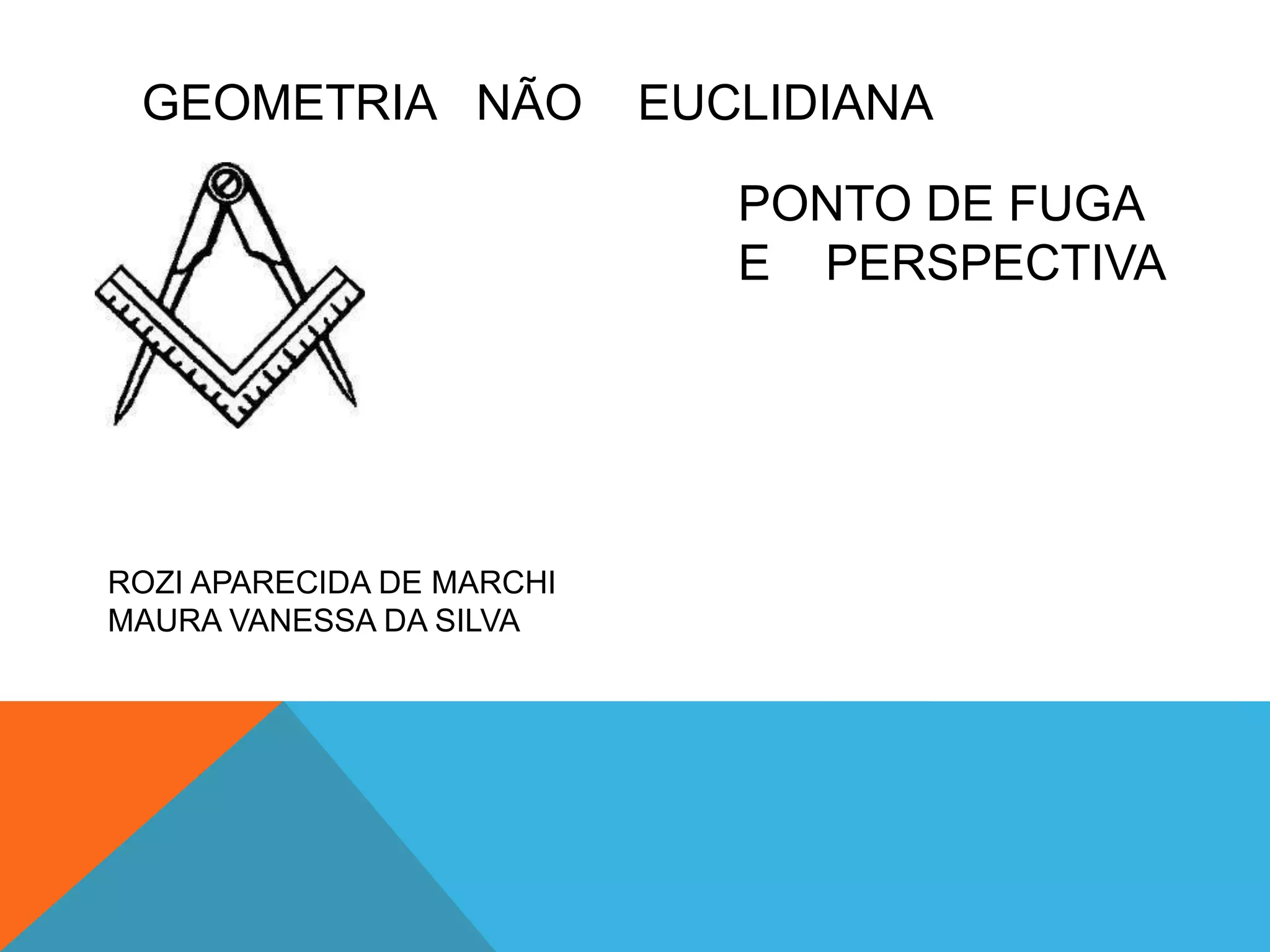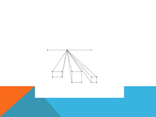 O documento explica os conceitos de ponto de fuga e perspectiva na geometria não-euclidiana. Ele instrui o leitor a desenhar blocos retangulares com um ponto de fuga traçando segmentos de retas dos vértices ao ponto de fuga, resultando em todas as setas convergindo para o ponto único. Ele então pede ao leitor para tentar desenhar uma cadeira usando dois pontos de fuga.