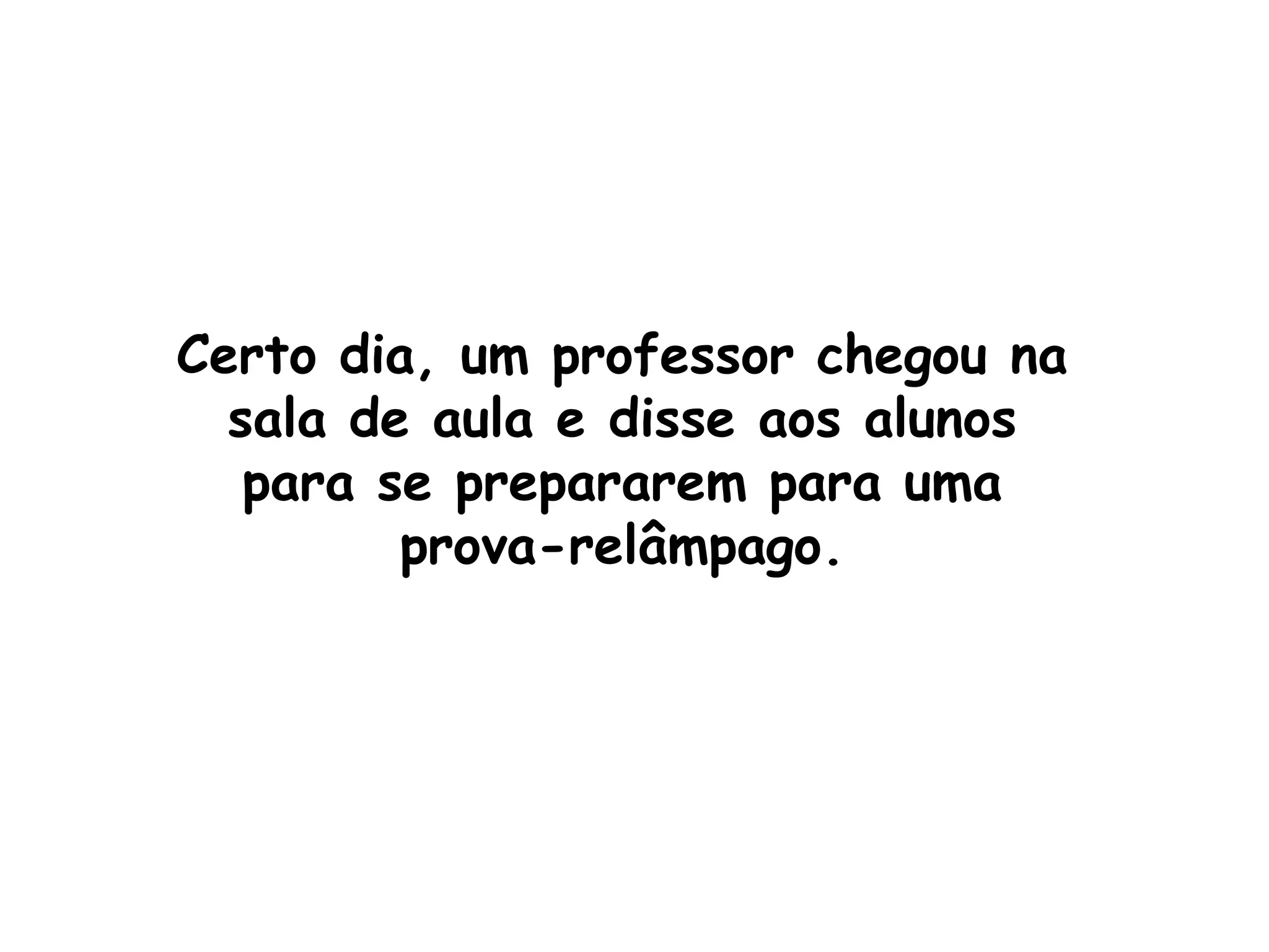 O professor deu uma prova incomum aos alunos com apenas um ponto preto no meio da folha. Os alunos escreveram sobre o ponto, mas o professor explicou que deveriam observar a folha em branco, assim como na vida focamos nos problemas em vez das bênçãos.