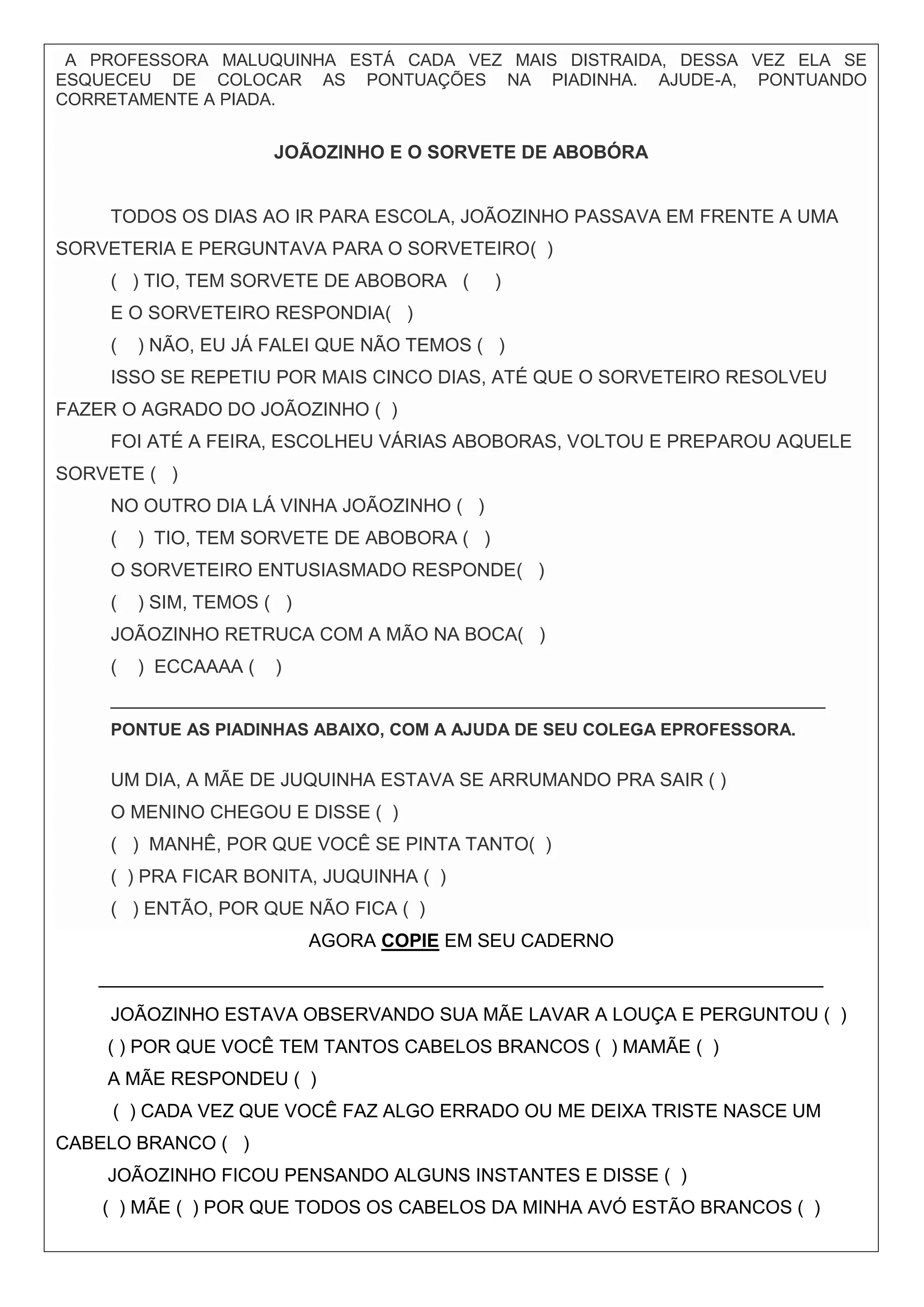 Joãozinho pergunta diariamente ao sorveteiro se tem sorvete de abóbora. Após cinco dias, o sorveteiro decide fazer o sorvete para agradar Joãozinho. No dia seguinte, quando Joãozinho pergunta se tem o sorvete, o sorveteiro responde afirmativamente, mas Joãozinho faz uma careta de desgosto.