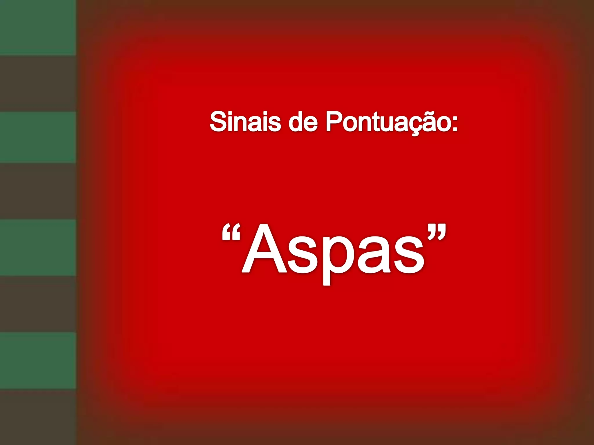 As aspas têm como função destacar partes do texto, sendo empregadas para citações, títulos, estrangeirismos e ironia. Ponto final deve ficar dentro ou fora das aspas dependendo de onde a frase começa ou termina. Deve-se evitar apenas ponto separando aspas fechadas e abertas de frase seguinte. Aspas também podem indicar ironia.