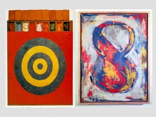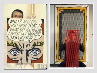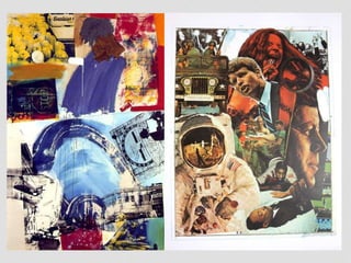 O termo 'pop art', originado em 1954, descreve um movimento artístico que se desenvolveu na década de 1950, refletindo a cultura popular e o consumismo das sociedades pós-Segunda Guerra Mundial. Artistas como Andy Warhol, Roy Lichtenstein e Claes Oldenburg utilizaram elementos da cultura de massa, como quadrinhos e produtos descartáveis, buscando elevar esses temas ao status de arte. O movimento também influenciou a publicidade e a comunicação visual contemporânea, mantendo sua relevância na cultura pop atual.