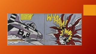 A pop art surgiu na década de 1960 como uma reação contra o expressionismo abstrato, retratando temas da cultura de massa e da sociedade de consumo através de obras que apropriavam imagens dos meios de comunicação. Artistas como Roy Lichtenstein e Andy Warhol tornaram-se proeminentes no movimento, com Lichtenstein recriando histórias em quadrinhos e Warhol produzindo serigrafias de objetos cotidianos e celebridades.