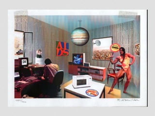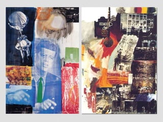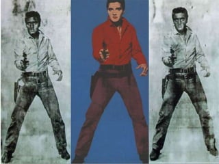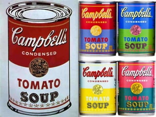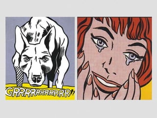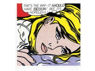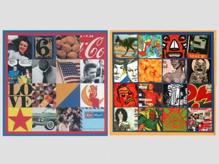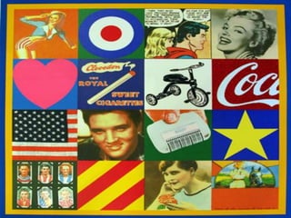 O documento descreve o movimento artístico Pop Art, que surgiu na década de 1950 na Inglaterra e Estados Unidos e retratava elementos da cultura popular capitalista. Artistas como Andy Warhol, Roy Lichtenstein e Claes Oldenburg se destacaram ao usar imagens do cotidiano em suas obras e elevar a cultura popular ao nível de arte. O movimento também ocorreu no Brasil durante a ditadura militar, com obras que criticavam o regime autoritário.