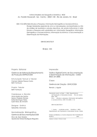 Este documento apresenta um resumo da população jovem brasileira entre 15-24 anos: