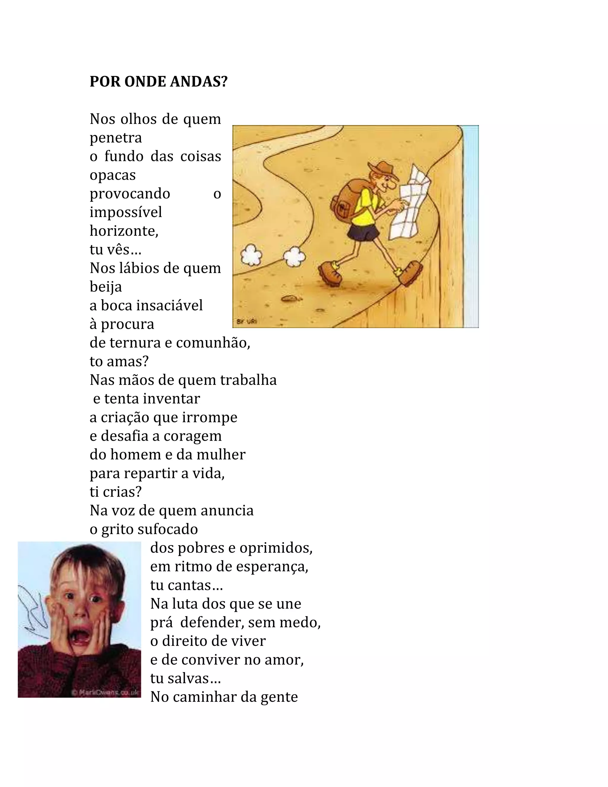 O poema descreve onde Deus pode ser encontrado: nos olhos daqueles que enxergam profundamente as coisas, nos lábios daqueles que buscam amor e comunhão, nas mãos daqueles que trabalham para criar e desafiar os limites humanos, na voz daqueles que anunciam a esperança dos oprimidos, e na luta daqueles que defendem o direito de viver em paz.
