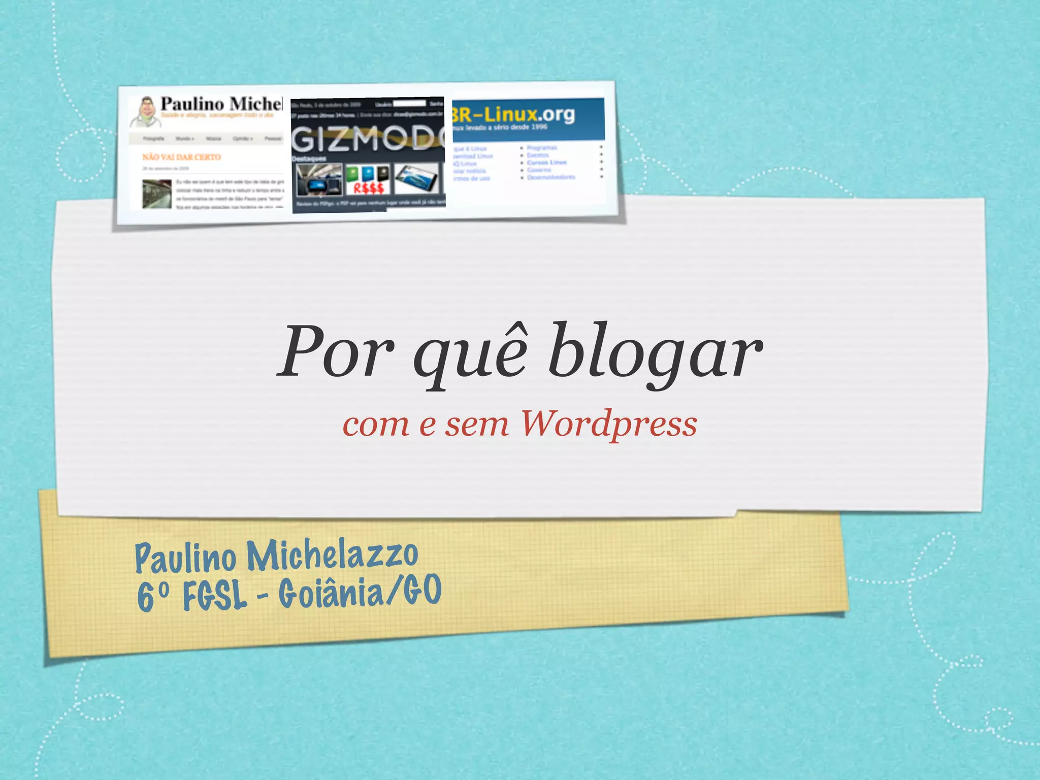O documento discute as motivações para iniciar um blog, como auto-promoção e compartilhamento de experiências, e aborda as barreiras comuns que as pessoas enfrentam. Apresenta o WordPress como uma solução acessível e fácil de usar para blogging. O autor conclui incentivando a criação de blogs, independentemente do tema, ressaltando que sempre há pessoas interessadas em ler e interagir.