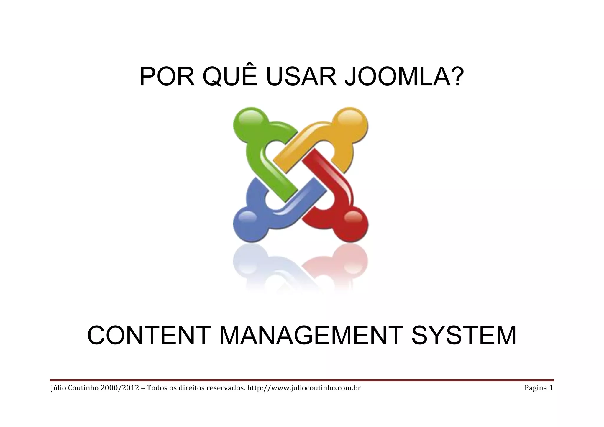 Joomla é um sistema de gerenciamento de conteúdo open source, que utiliza a plataforma LAMP e foi eleito o melhor CMS do mundo em 2011, superando Drupal e Plone.