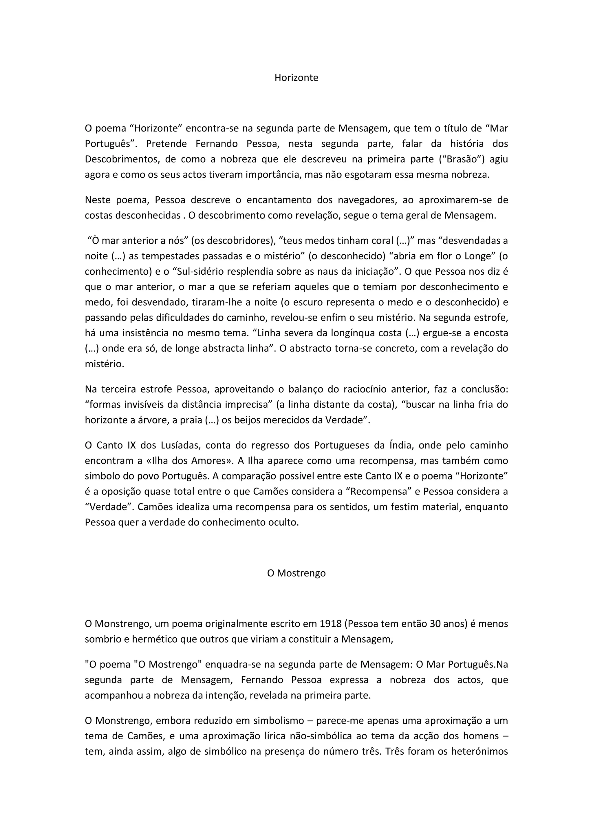 3) "O Mostrengo" fala da nobreza dos atos portugueses e sugere que mesmo ações aparentemente simples escondem um desígnio maior.
