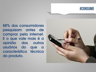 O documento discute estratégias de marketing para pequenas empresas utilizando mídias sociais, enfatizando engajamento emocional e viral através de conteúdo motivador. Ele também destaca que pesquisas online mostram que a opinião de outros usuários pesa mais do que características técnicas de um produto.