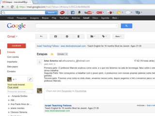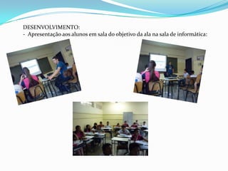 Os alunos da 9a série C apresentaram um projeto sobre saúde e movimento utilizando recursos da Web 2.0 como o Httrack, SlideShare e Google Docs. Eles produziram textos com base em temas de um site e compartilharam suas apresentações online. Um texto coletivo sobre o que aprenderam também está sendo produzido no Google Docs.