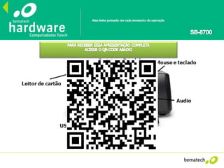 O documento discute a automação comercial e apresenta produtos da Bematech para automatizar processos comerciais, como impressoras fiscais, leitores de código de barra, coletores de dados, monitores touchscreen, computadores e gabinetes de caixa. A Bematech oferece uma variedade de equipamentos para agilizar operações, reduzir custos e melhorar a produtividade dos negócios.