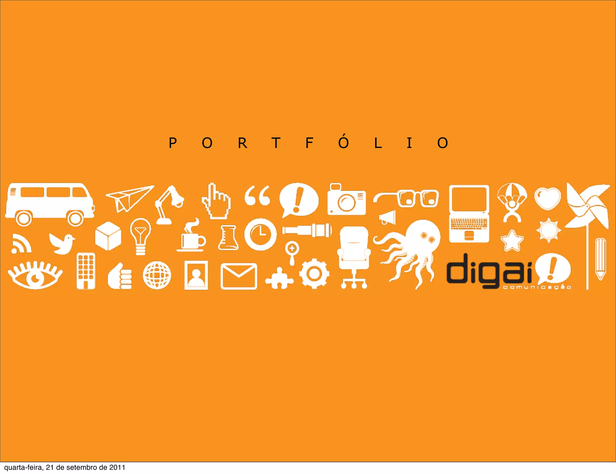A Digaí Comunicação é uma agência de marketing especializada em promoções e eventos. Ela trabalha em várias cidades brasileiras como Salvador, Recife, São Paulo e Brasília. A agência oferece diversos serviços como ações promocionais, feiras, eventos, publicidade e incentivos para fixar marcas na mente dos consumidores.