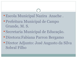 Este portfólio descreve o trabalho de um professor de matemática na Escola Municipal Nazira Anache em Campo Grande, MS. O portfólio destaca os objetivos de ensinar matemática para alunos do 9o ano, os tópicos cobertos e os recursos e atividades utilizadas, incluindo sites educacionais e um projeto que usa pontos turísticos locais para ensinar ângulos.