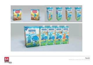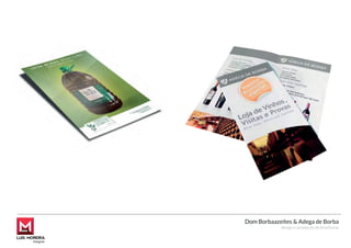 O documento lista vários projetos de design gráfico e industrial realizados pela empresa School House, incluindo landing pages, publicidade, cartazes, materiais para redes sociais, flyers, vinis para veículos e posters. Também inclui projetos de modelação 3D para outras empresas.