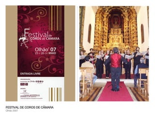 Este documento lista vários eventos musicais e de fotografia ocorrendo em cidades do Algarve, Portugal em 2007, incluindo uma exposição de fotojornalismo, festivais de coros e órgãos, concertos de música de câmara para escolas, e workshops de fotografia.