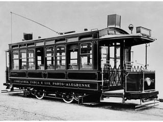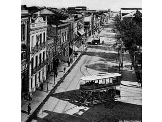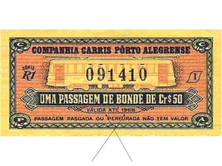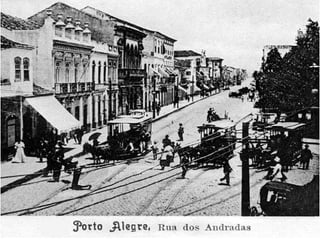 O documento lista locais e pontos de referência em Porto Alegre, como o Largo do Mercado Público, Praça XV, Rua Benjamin Constant, Petrópolis, Avenida João Pessoa, Edifício União, Banco da Província, Banco do Brasil, Largo da Prefeitura, Exposição, Avenida Otávio Rocha, bonde, Teresópolis e Parque da Redenção.