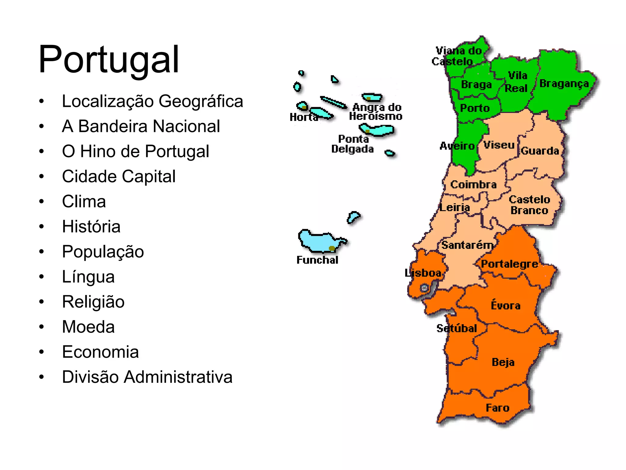 Portugal é um país localizado na Península Ibérica com Lisboa como capital. O país tem uma história que remonta a 1143 e foi um importante império colonial, falando-se português por 210 milhões de pessoas. Atualmente, a moeda é o Euro e a economia é uma economia de mercado integrada na União Europeia.