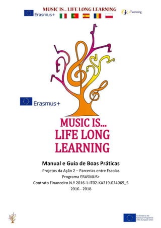 Este documento apresenta o projeto "Music is... Life Long Learning" que envolveu cinco escolas europeias entre 2016-2018. O objetivo do projeto foi ensinar disciplinas como línguas, ciências, matemática e tecnologia através da música. O documento descreve as escolas parceiras na Itália, Espanha, Romênia, Portugal e Polônia e apresenta as metodologias de ensino desenvolvidas usando a música em diferentes disciplinas.