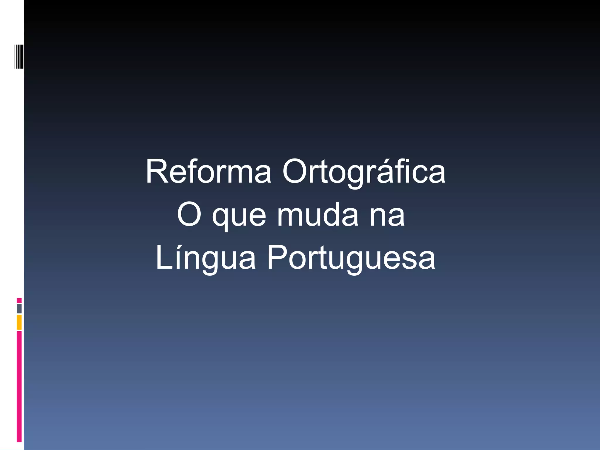 O documento descreve a história dos esforços para unificar a ortografia da língua portuguesa entre Brasil e Portugal ao longo do século XX, culminando no Acordo Ortográfico de 1990. As principais mudanças introduzidas pelo acordo incluem a abolição do trema e consoantes mudas e novas regras para o hífen e acentuação. O acordo entrou em vigor em 2009 e tem como objetivo unificar a escrita dos oito países que falam português.