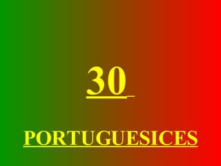 O documento lista 30 atividades comuns portuguesas que envolvem o uso criativo de itens do dia a dia ou ações divertidas, como beber cerveja em copos de plástico, consertar objetos de forma caseira, e brincadeiras entre amigos e família.