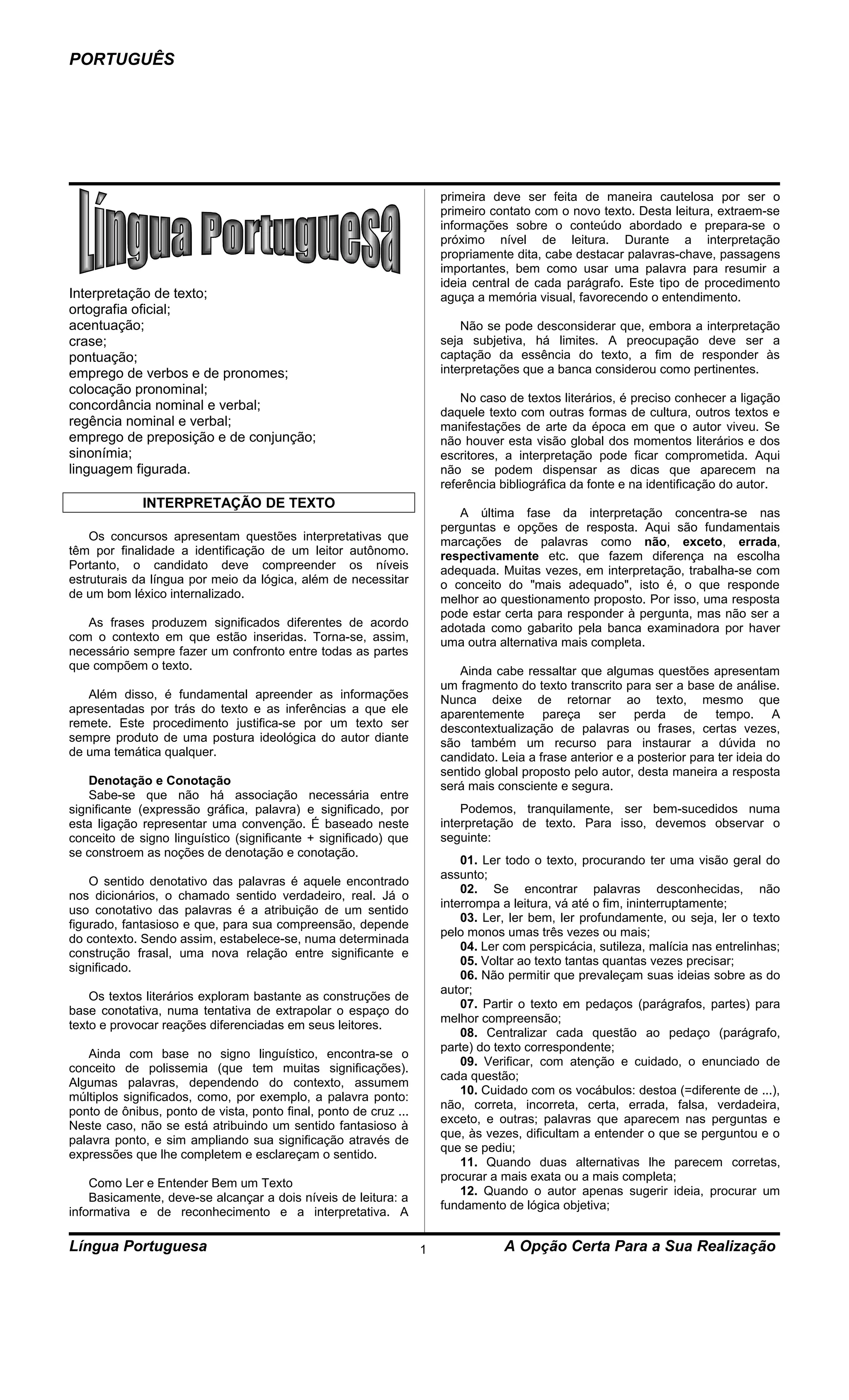 1) O documento discute estratégias para interpretação de texto em provas, incluindo diferentes níveis de leitura e destacar informações-chave.