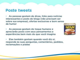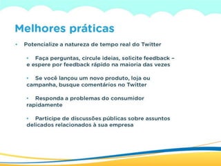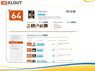 O documento discute estratégias de branding e gestão de marcas nas redes sociais. Ele explica como as ONGs podem se posicionar como marcas para cumprir suas missões sociais de forma mais efetiva, destacando a importância do branding e da presença nas principais redes sociais como Facebook, Twitter e Orkut.