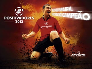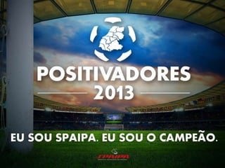 A campanha de incentivo POSITIVADORES 2013 teve como objetivo motivar as equipes de vendas através de uma competição entre times fictícios inspirados no futebol. As equipes foram divididas em times sorteados e receberam materiais de identidade visual. A campanha premiou o alcance de metas de vendas com brindes e troféus para as equipes vencedoras. O resultado foi um aumento nas vendas que superou as expectativas.