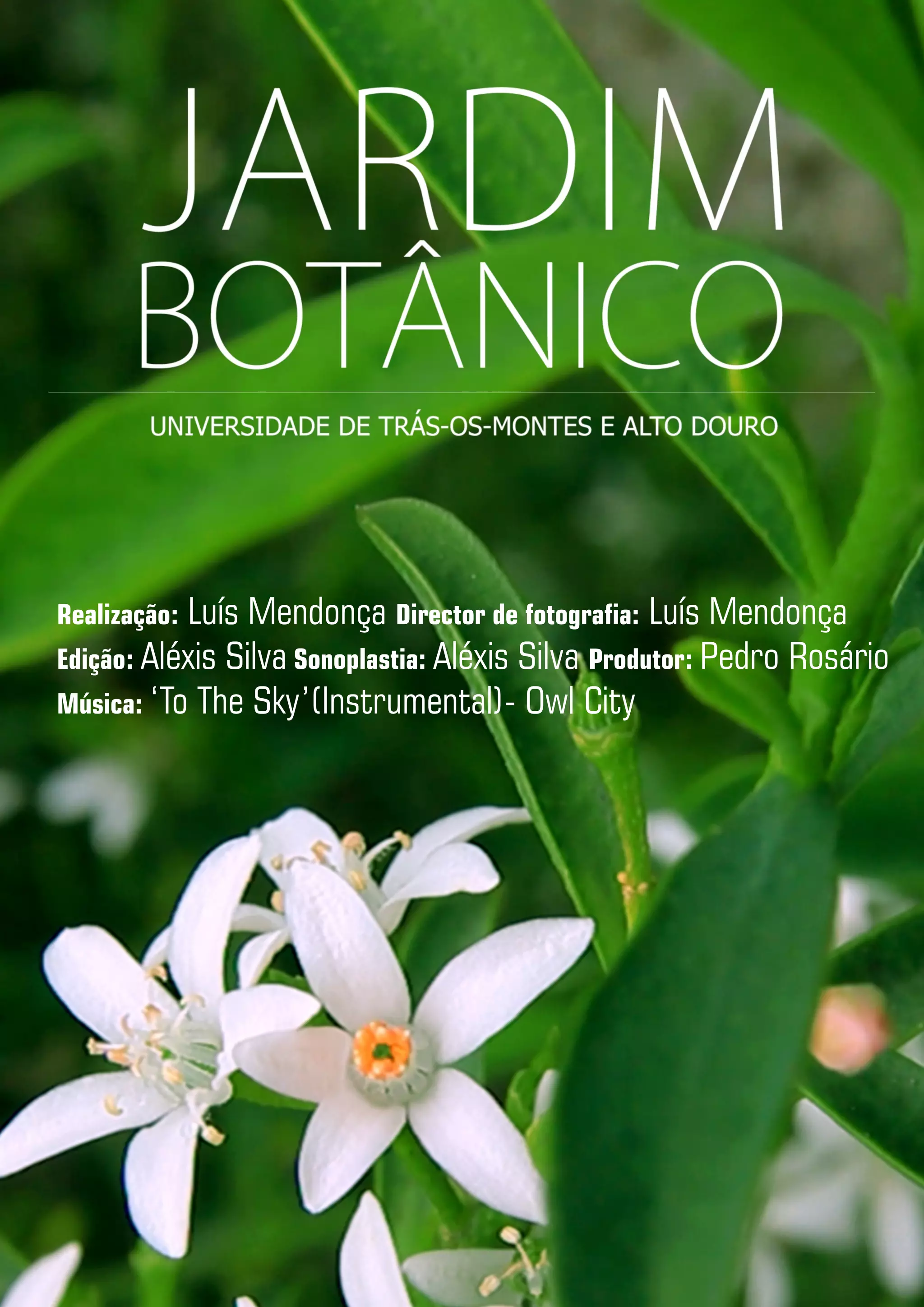 Este documento lista os créditos de uma produção audiovisual, incluindo o diretor de fotografia, editor, produtor de som e música, Luís Mendonça, Aléxis Silva e Pedro Rosário. A música utilizada foi "To The Sky" do artista Owl City.