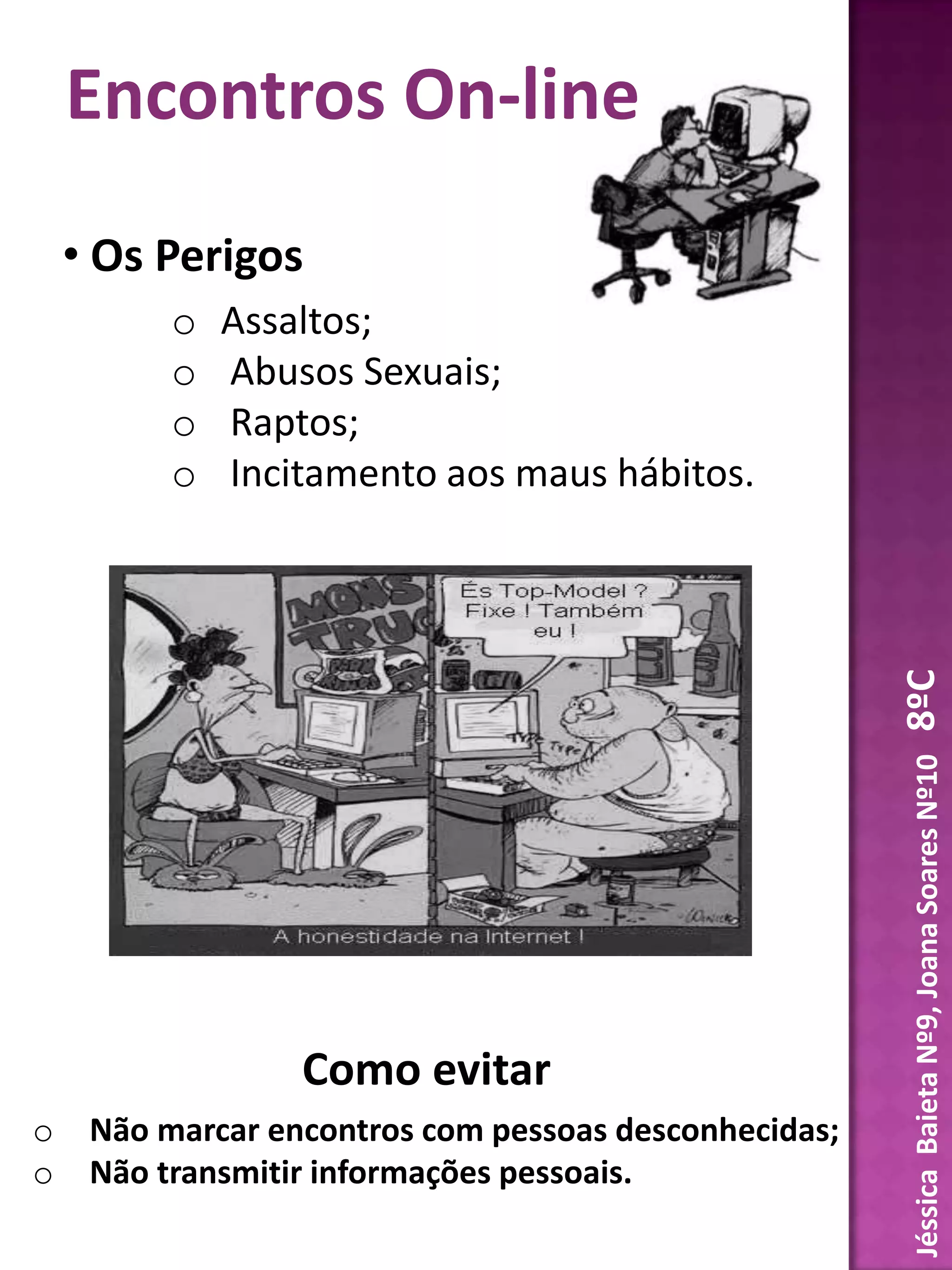 Incitamento aosmaus hábitos.8ºCJéssica Baieta Nº9, Joana Soares Nº10Como evitar Não marcar encontros com pessoas desconhecidas;
