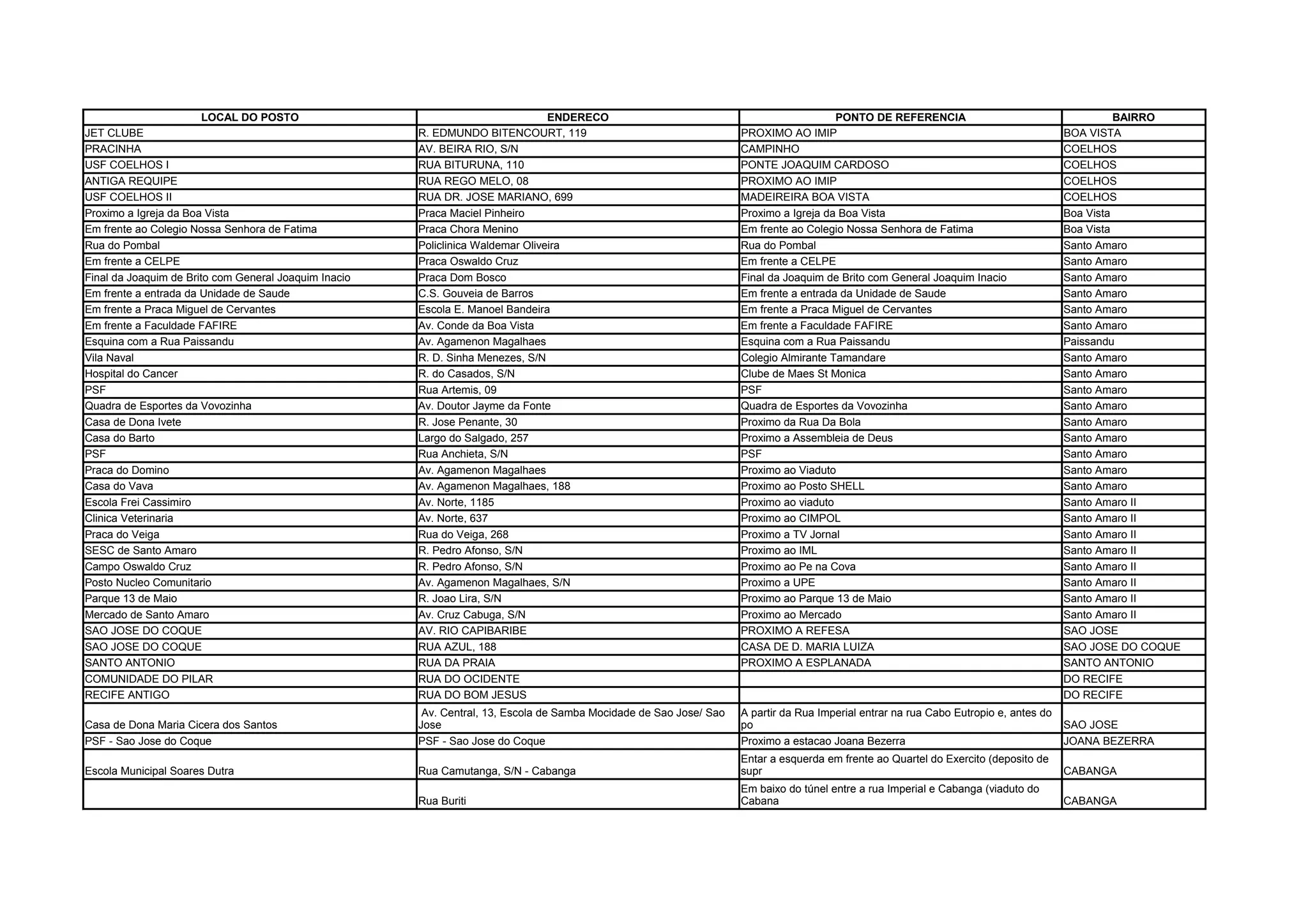 LOCAL DO POSTO ENDERECO PONTO DE REFERENCIA BAIRRO