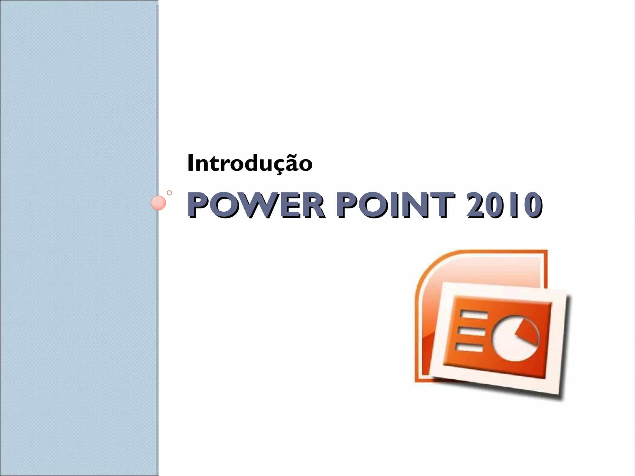 O documento descreve as principais funções e ferramentas do PowerPoint 2010 para criação de apresentações, incluindo guias para inserção de mídia, design, animações e revisão, além de explicar a interface do usuário com a faixa de opções, barra de ferramentas e modo de exibição.