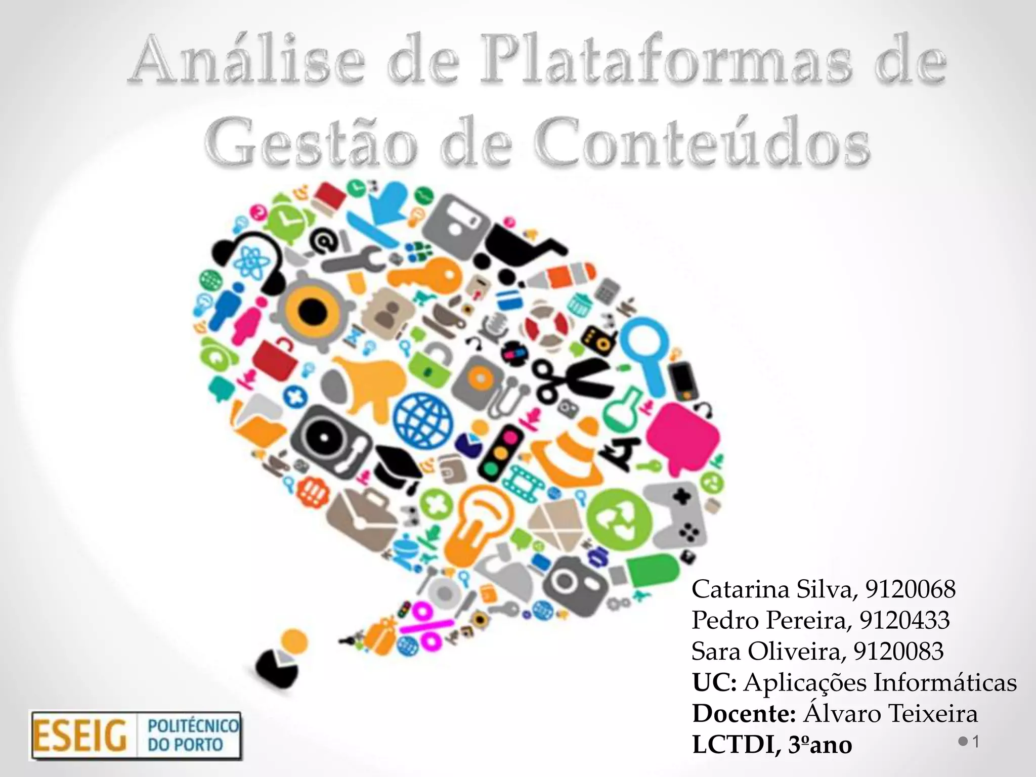 Este documento apresenta um resumo sobre gestão de conteúdos em plataformas digitais, abordando gestão de informação genérica e cronológica, gestão de documentos e trabalho colaborativo. Inclui uma tabela comparativa entre características de blogs, wikis, redes sociais e sistemas de gestão de aprendizagem.