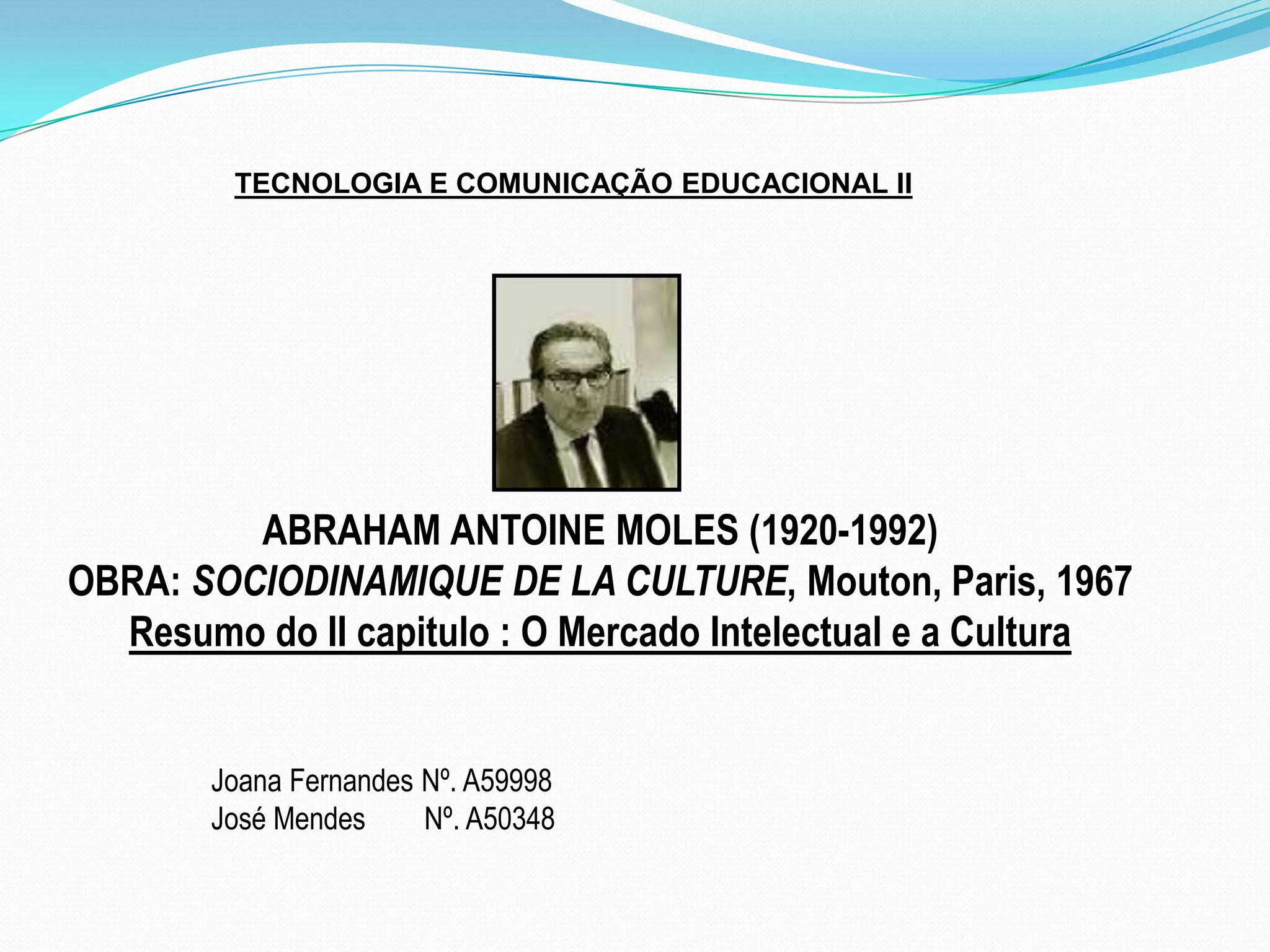 Este documento resume o capítulo 2 do livro "Sociodinamique de la Culture" de Abraham Moles, onde ele analisa as mensagens culturais como mercadorias que podem ser estudadas independentemente de seus conteúdos. Ele introduz vários conceitos como "canais culturais", "produtos culturais", e define a "sociodinâmica da cultura" como a interação entre a cultura e o meio que a sustenta.
