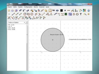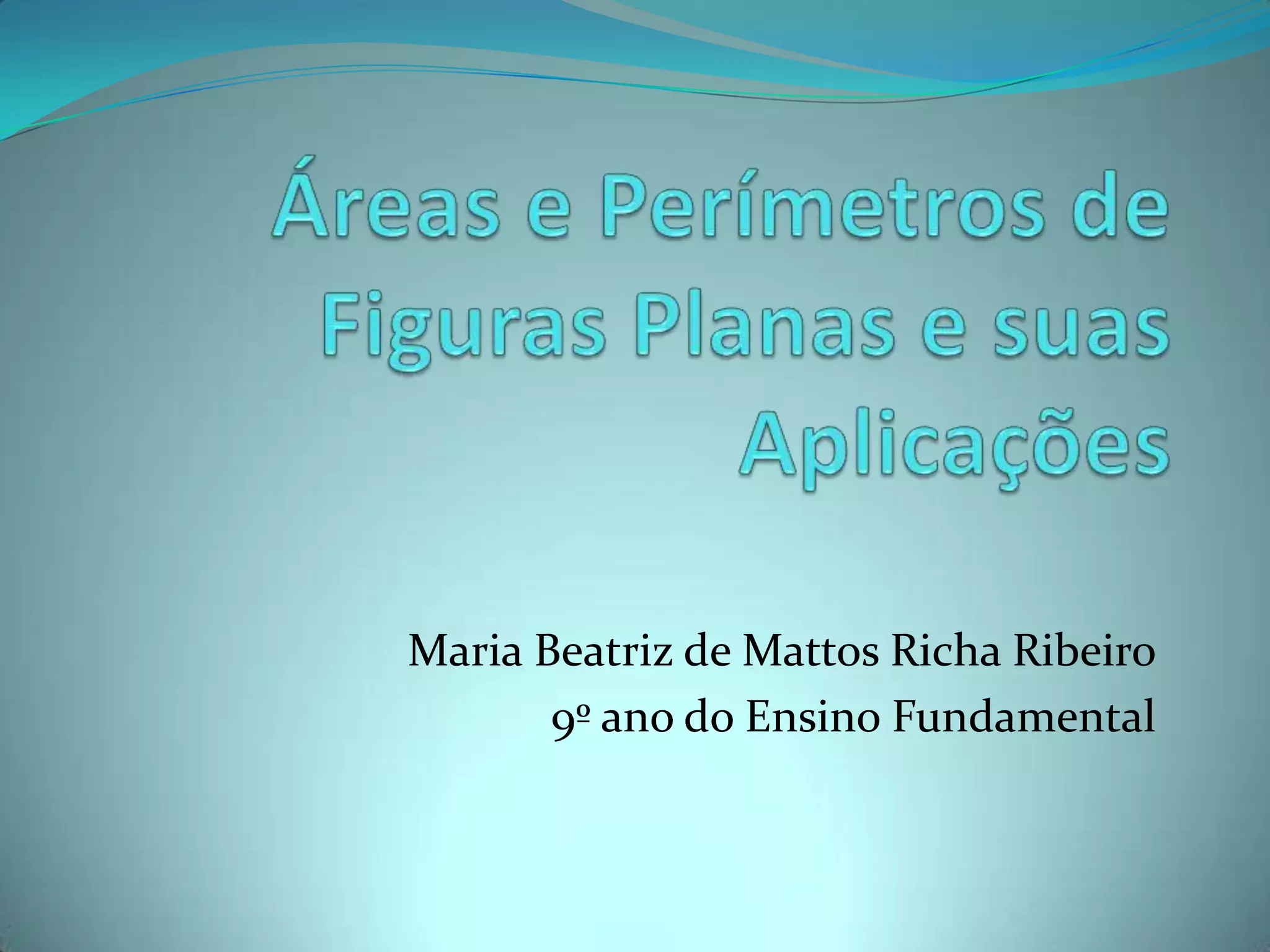 Este documento apresenta um projeto sobre áreas e perímetros de figuras planas utilizando vídeos, software educativo e atividades práticas com alunos do 9o ano do ensino fundamental. O projeto visa explorar o tema de forma contextualizada e estimular os alunos a perceber sua importância no cotidiano através de construções geométricas e cálculos envolvendo circunferências, triângulos, quadriláteros e trapézios.