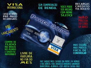 O documento descreve um programa de incentivo que oferece renda extra através da divulgação de um cartão pré-pago. Os participantes recebem prêmios por indicações de novos membros e também por consumo realizado por sua rede. O investimento inicial é de R$150 e não há limite no número de indicações que podem gerar prêmios de R$50 cada.
