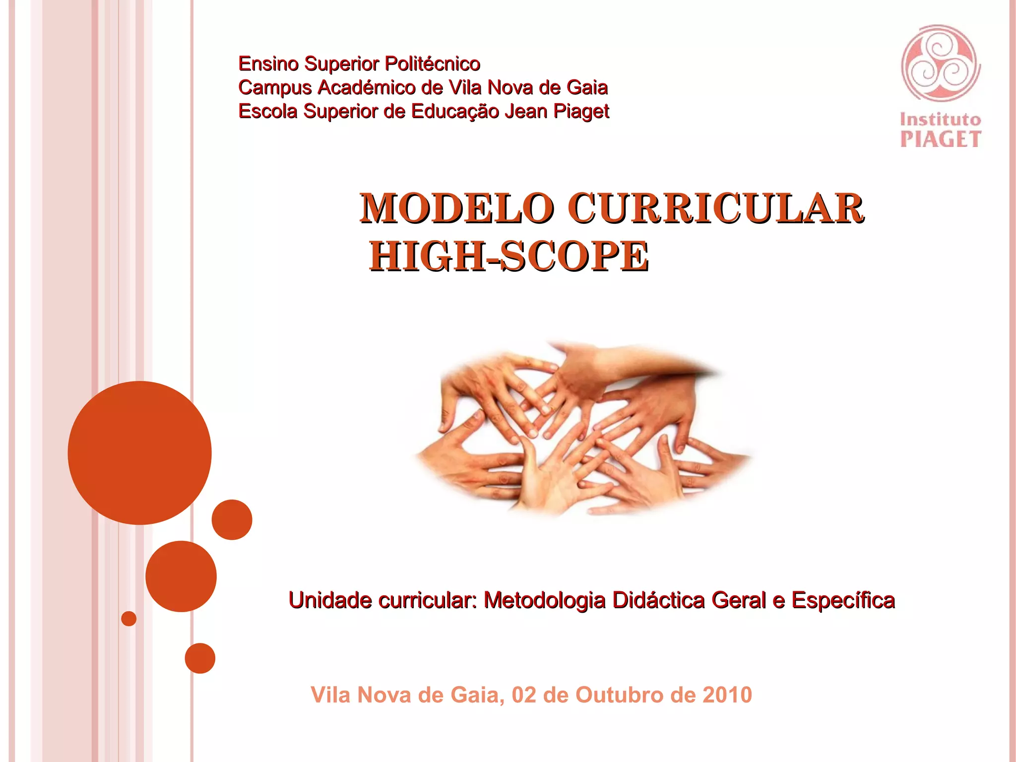 O modelo educacional High-Scope surgiu em 1962 para servir crianças de bairros pobres com baixo rendimento escolar. Foi criado por David Weikart e outros para oferecer uma abordagem educacional focada no desenvolvimento cognitivo de crianças de 3-4 anos através de experiências ativas, em contraste com os jardins de infância da época que se concentravam no desenvolvimento social e emocional. O modelo se baseia na teoria do desenvolvimento infantil de Piaget e enfatiza a aprendizagem ativa, a resolução de problemas e