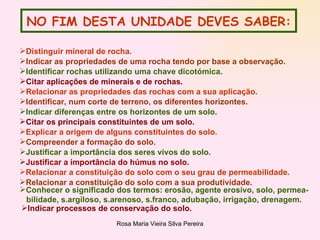 O documento discute as propriedades e formação de rochas e minerais, incluindo como o petróleo é formado a partir de restos orgânicos enterrados. Também aborda como as rochas preservam fósseis e registram a história da Terra, além de como os humanos primitivos usavam rochas e minerais para ferramentas, abrigo e arte.