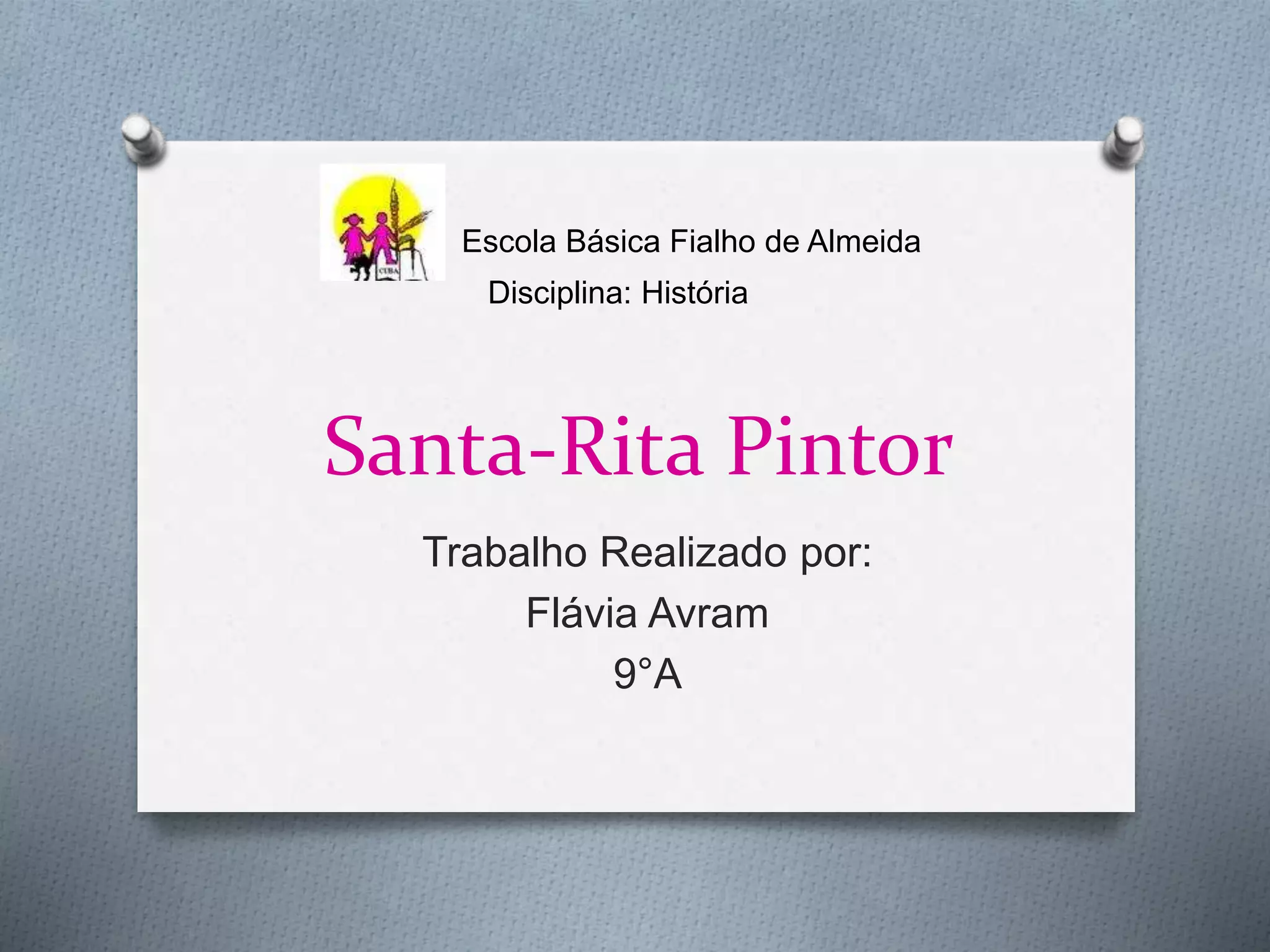 Santa-Rita Pintor foi um artista português considerado o iniciador do Futurismo em Portugal. Formou-se em Lisboa e viveu em Paris onde conheceu artistas vanguardistas como Picasso e Marinetti, tornando-se um importante introdutor das ideias futuristas em Portugal. Publicou a revista Portugal Futurista em 1917, mas morreu no ano seguinte aos 28 anos, deixando poucas obras devido a ordens da família para destruí-las.