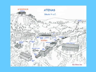No século V a.C., a Grécia era constituída por cidades-estados independentes chamadas pólis, como Atenas. Atenas era a mais importante, situada na Ática com agricultura e artesanato desenvolvidos. Estabeleceu a democracia, onde só os cidadãos masculinos participavam no governo, através de órgãos como a Bulé e a Eclésia.